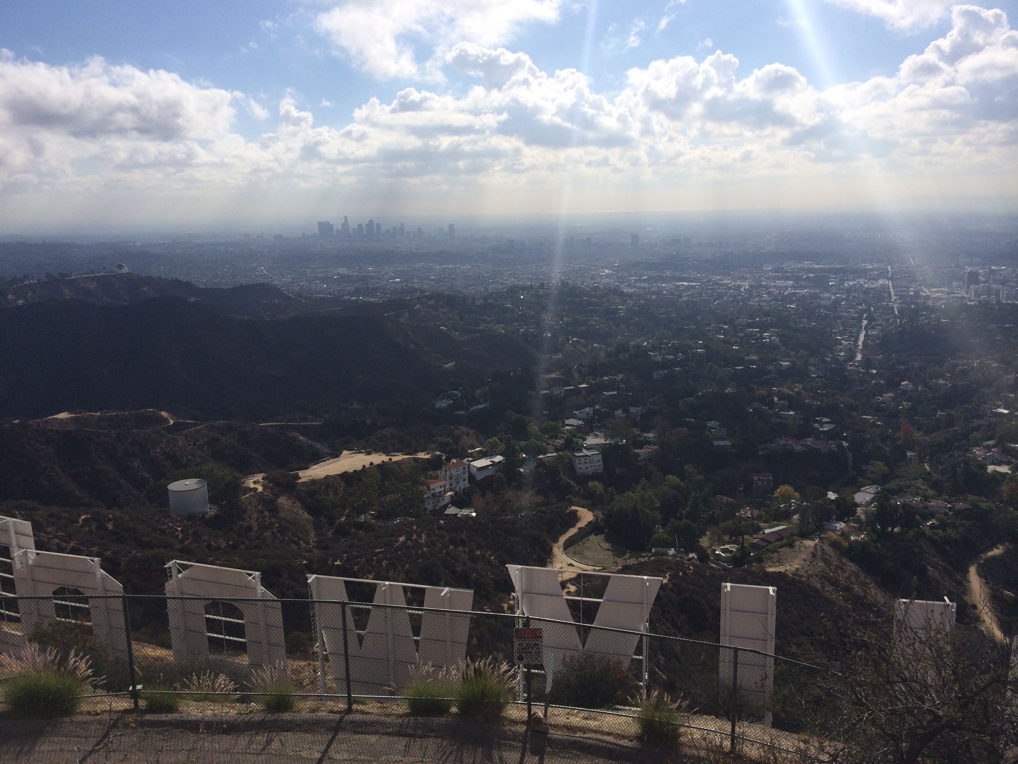 Our hike to the sign took about 45 minutes with the last 15 minutes consisting of a pretty consistent uphill grade and even a view of “the Valley.”  As we make it to the top of the hill we are greeted with one of the most stunning views.  The sky was clear and we could see the Griffith Observatory, downtown LA, Santa Monica, and Malibu.