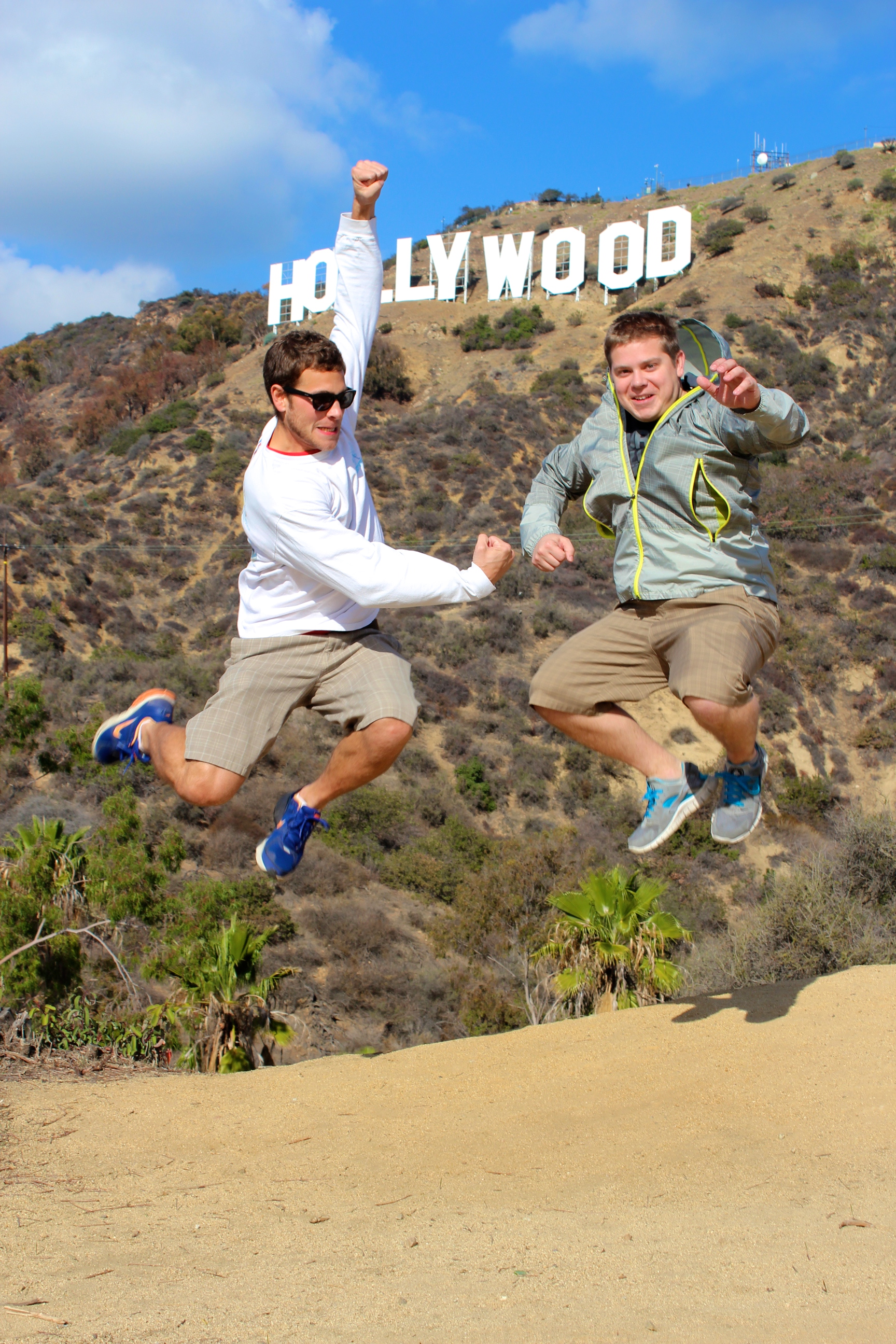 After a great breakfast prepared by Mr. & Mrs. Adventure, we gather our gear and head towards the Hollywood hills.  This morning’s mission is to hike to the top of the Hollywood sign.  Arriving at Drew’s secret parking spot near the hills, I step out of the car and nearly fall 20 feet off the side of a cliff.  With my heart beating faster than normal after the near miss, we make our way to the trail that will lead us to one of the most famous and recognizable sights in California.