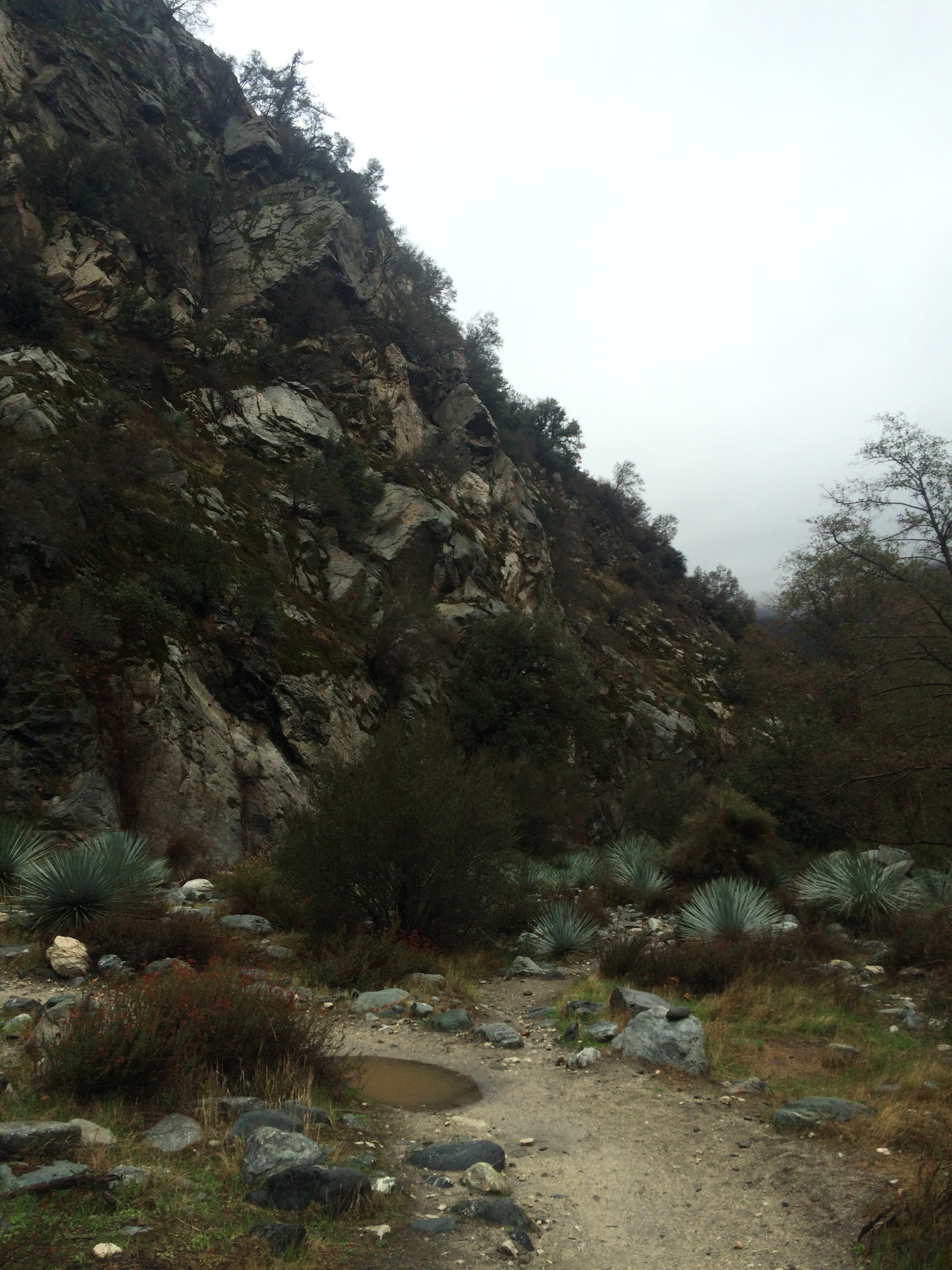The alarm goes off and I realize it is 5:30 AM and my head is slightly pounding.  Maybe I had one to many Moscow Mules the night before.  As Mr. & Mrs. Adventure and myself start to get ready we soon realize we are running late.  We scramble to put on our warm hiking clothes and head for the car.  The last twelve miles into the San Gabriel Mountains is full of twists, turns, blind corners, and steep drops off the side of the mountain.  With Drew at the wheel of Brittany’s Honda Fit we have been able to make up some time.  When most would slow down as we enter the rain soaked mountain roads, Drew pushes the Fit harder.  I count down the miles remaining and just pray that our driver manages to keep the car on the mountain and get us to our meeting point.  Thankfully, we arrive safely and as I open the door I can smell burning rubber.  Never in my life have I wanted to get down and kiss the ground more than I have at this exact moment.