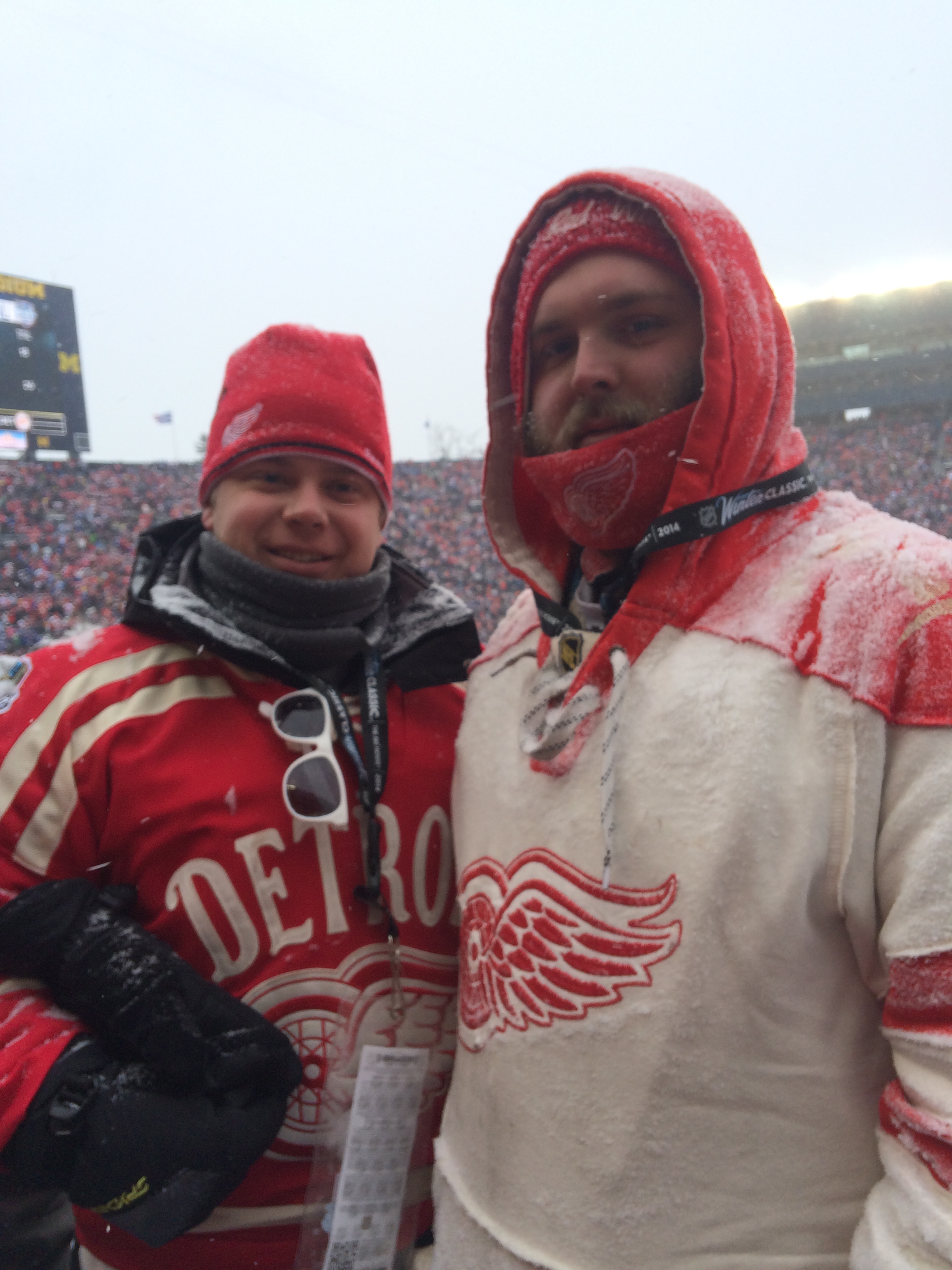 The morning of January 1, 2014, I wake up on the same futon at the Butler household. This morning the clock reads 6:30 AM. Unlike any other morning, I’m excited to get out of bed and get dressed. Today, Frankie and I are on our way to The Big House in Ann Arbor, Michigan to watch the 2014 Winter Classic. Every year on New Years day I turn on the television and wish I was at this game; this year my wish has come true. On this morning, there is already 6 inches of snow on the ground and the forecast is calling for another 4 to 6 inches throughout the day.