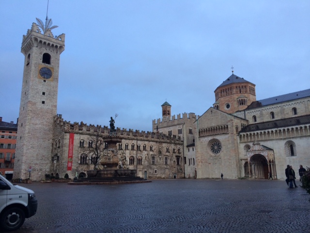 After walking for a few minutes, we arrive in the city center, Piazza del Duomo, which is filled with Late Medieval and Renaissance buildings including Trenton Cathedral.